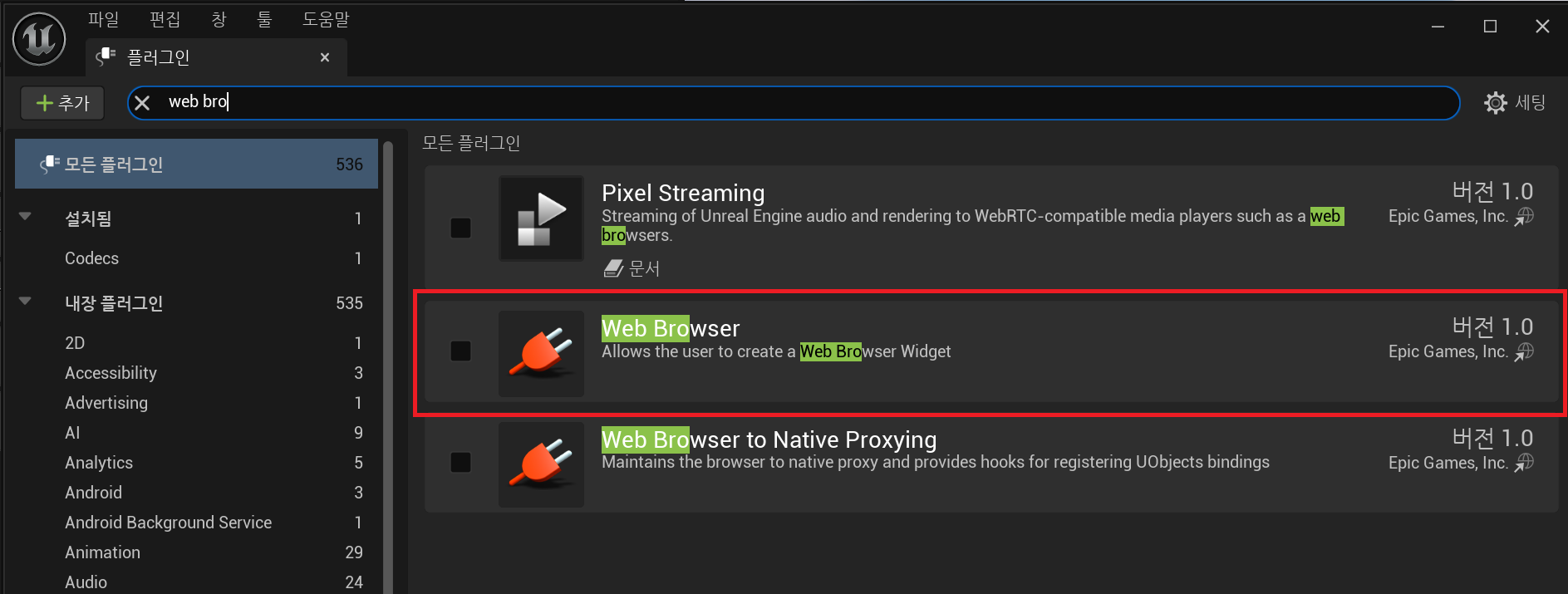 언리얼에서 제공해주는 플러그인을 가지고 웹페이지를 띄워보자.