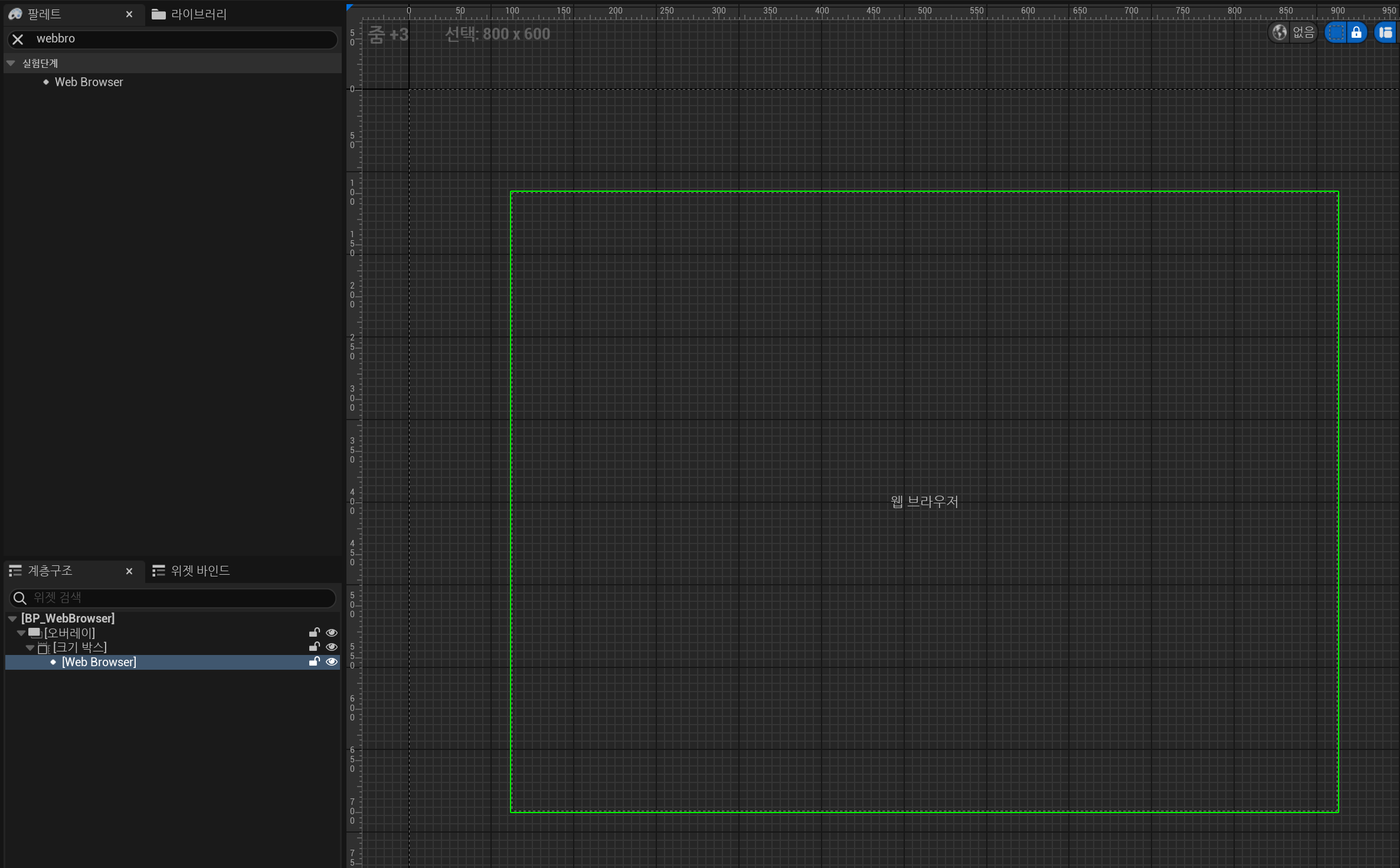 'Web Browser'라고 검색하면 팔레트에서 선택이 가능하다 적절한 위치에 배치를 해준다.