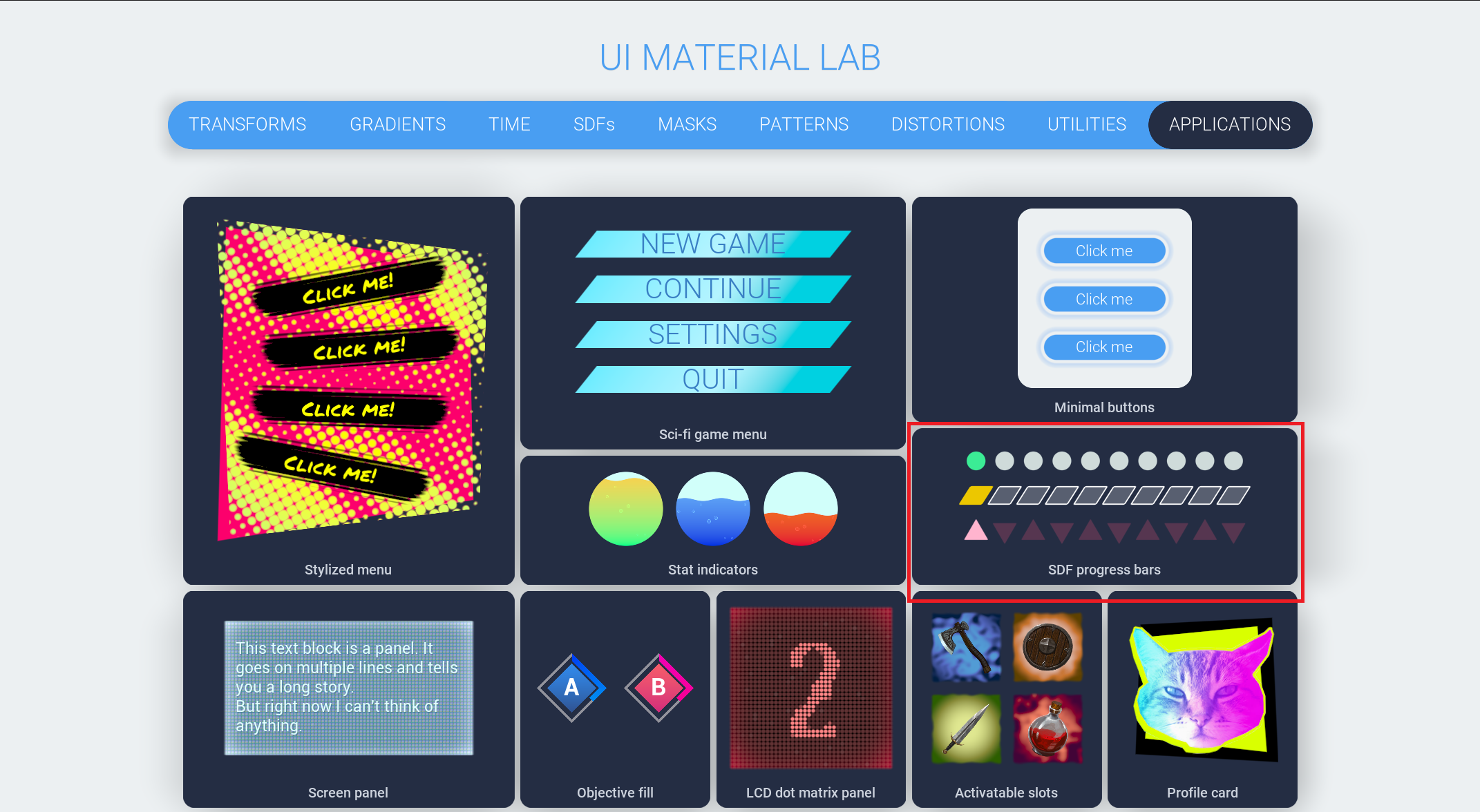 그 중 여기에 표시된 SDF progress bars에 있는 material을 이주시켜서 사용해 보려고 한다.