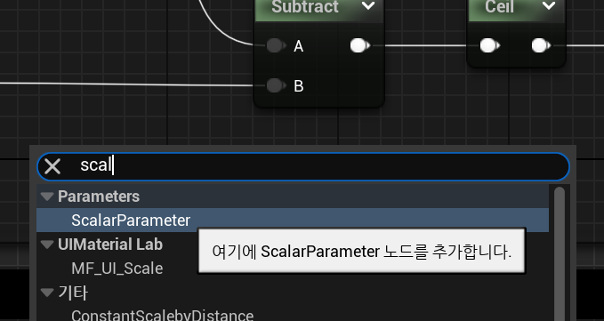 새로운 float값 하나를 넘겨주는 Parameter를 추가하기 위해서 Scalar Parameter를 추가해주자.