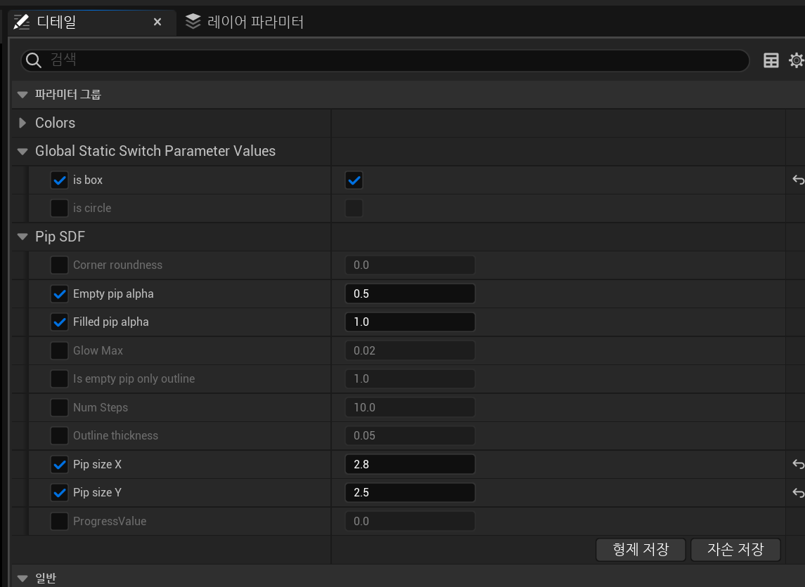 만들어 놓은 MI(Material Instance)를 열고 값은 위와같이 설정했다.